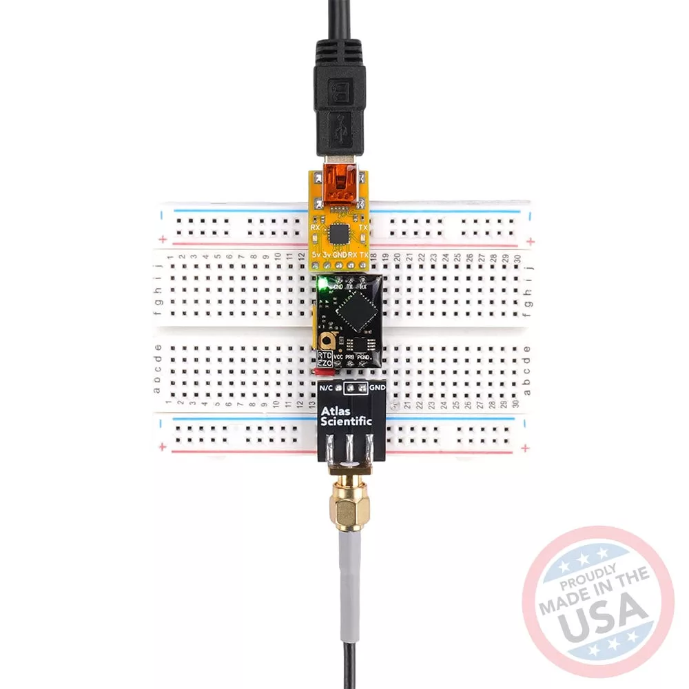 Kompakt méretű PT-1000 hőmérséklet mérő kit Class-A platina szenzorral és EZO™ RTD áramkörrel. A micro szonda szűk helyekre, kisebb tartályokba, mikrofluidikai alkalmazásokba és precíz pontmérésekre ideális. Digitális UART/I2C kimenet – közvetlenül Arduino-hoz vagy Raspberry Pi-hez csatlakoztatható, programozás és adatnaplózás céljából.